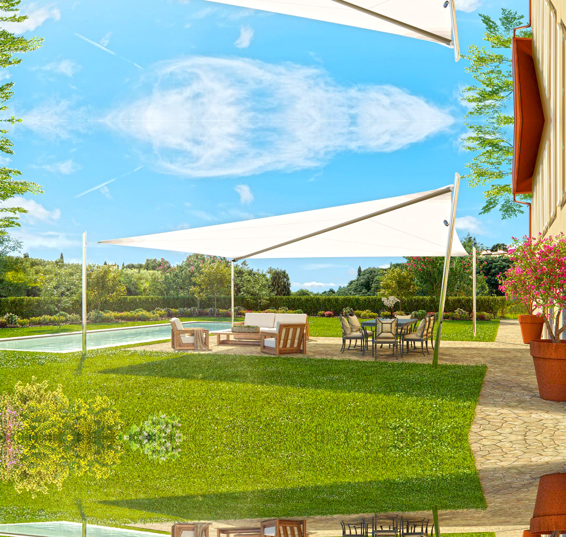 Diseñamos e instalamos tensoestructuras y toldos fijos de alto impacto visual, combinando membranas de alta tecnología con estructuras esbeltas para crear ambientes únicos y protegidos.