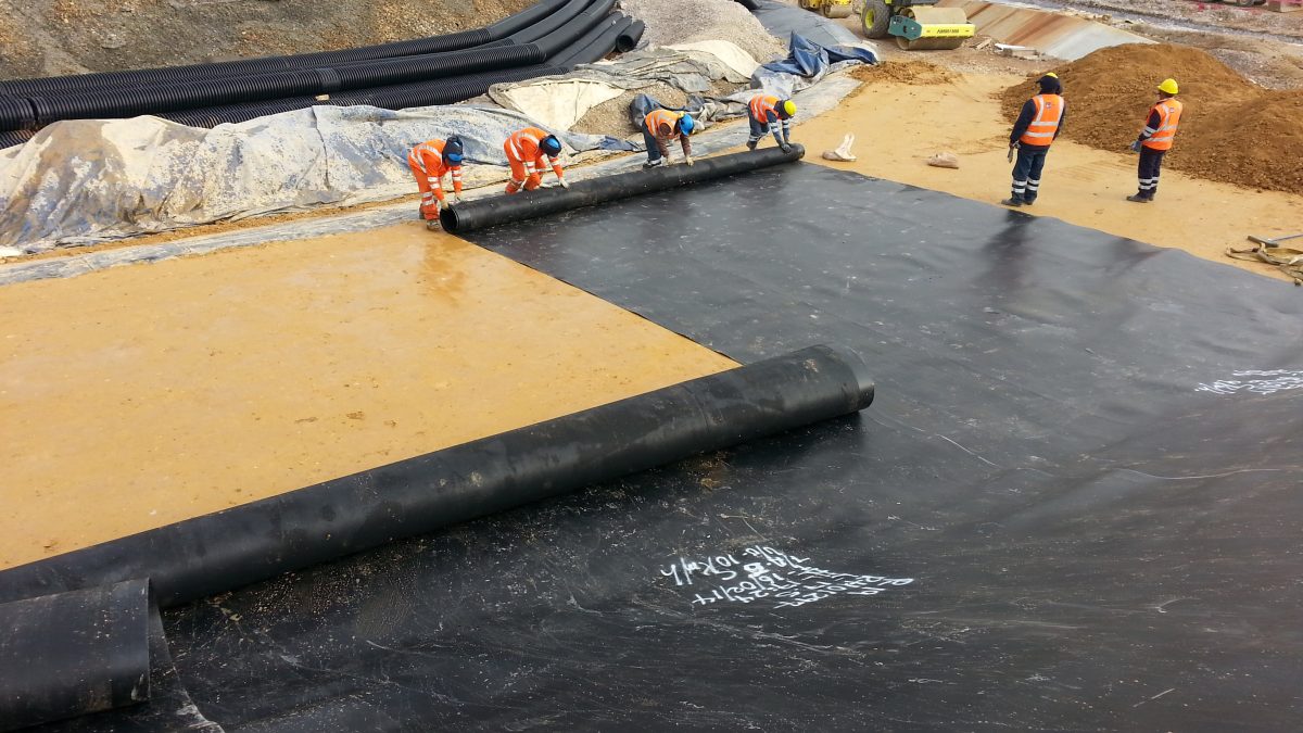 Mediante la instalación de una barrera de geomembrana de PVC/LLDPE fijada mecánicamente y soldada térmicamente, que canaliza el agua hacia sistemas de drenaje específicos.