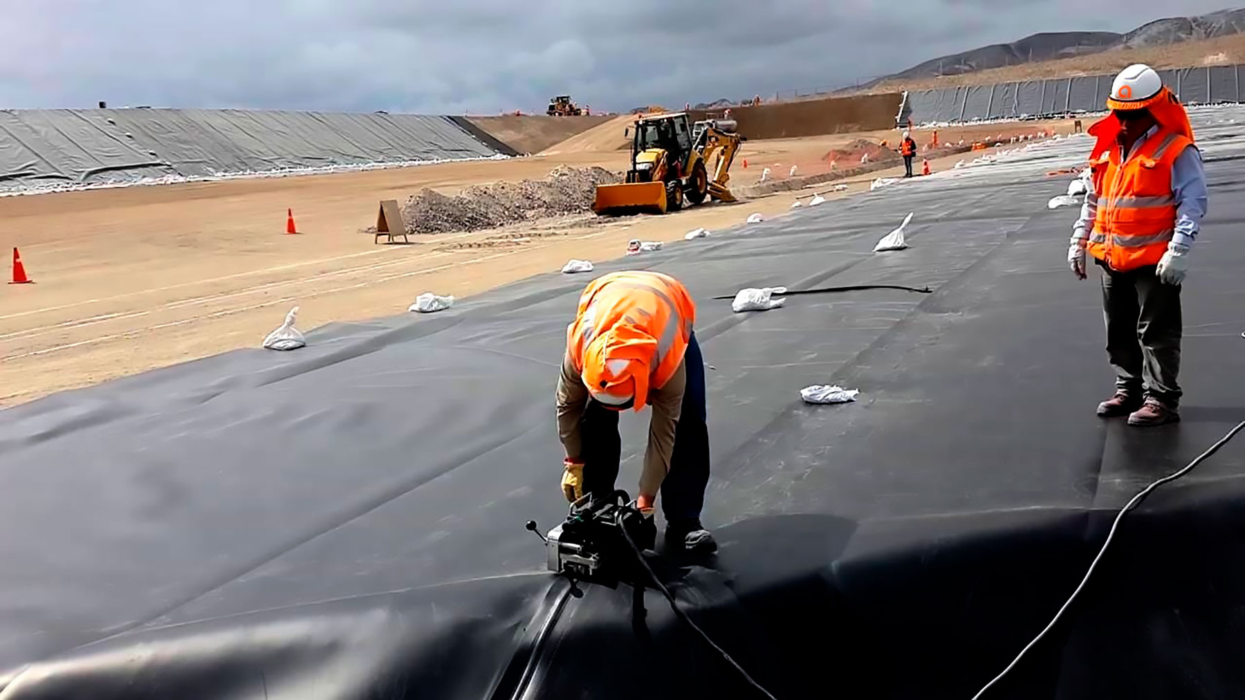 Termofusión y Soldadura Certificada: Utilizamos equipos de cuña caliente y extrusión para asegurar uniones moleculares indestructibles en geomembranas de HDPE, LLDPE y PVC.